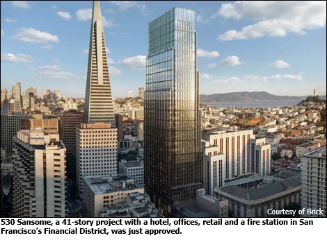 SAN FRANCISCO – A 41-story tower with a hotel, offices, retail and a fire station will rise on a half-acre site in San Francisco’s financial district.