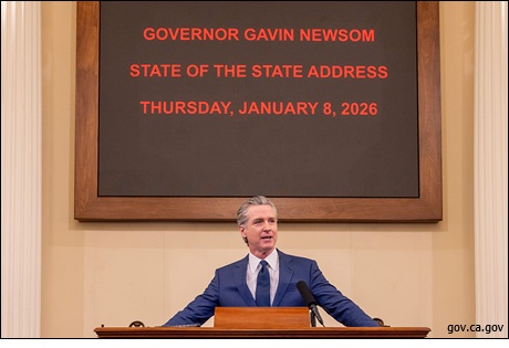 During his address, which he gave to lawmakers in Assembly chambers Thursday, Newsom spotlighted the state’s position as the fourth-largest global economy while claiming that it had made strides to address its housing crisis, wildfire recovery, prescription price reductions and investment in renewable energy. “In California, we are not silent. We are not hunkering down. We are not retreating. We are a beacon,” Newsom said. “This state is providing a different narrative. An operational model, a policy blueprint for others to follow.” The Sacramento Bee noted it was the first time Newsom has given an in-person state address from the Capitol in six years. Newsom is termed out and cannot seek re-election as governor. Story Date: January 17, 2026