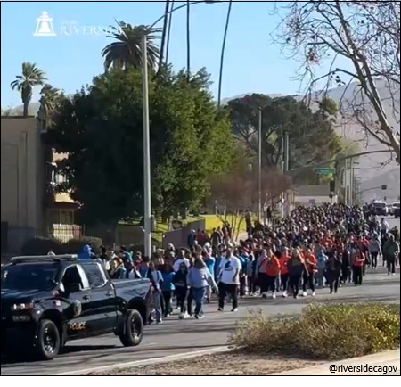In Riverside, clear, sunny weather bathed the 31st annual MLK Walk-A-Thon. It stepped off from Bordwell Park enroute to the downtown public library. A Community Birthday Celebration followed at the Park Avenue Baptist Church. San Bernardino offered a noontime parade along West 4th Street with actor Brian Hooks as grand marshal. The theme was βThe Power of Unity: Together We Rise.β In Ontario, it was the MLK Unity Breakfast at the Toyota Arena. Prayer breakfasts were held at the Entrepreneur High School in Highland and the Pechanga Resort Casino in Temecula. In Redlands on Tuesday, a Peace Walk begins at 11am at the Memorial Chapel. Story Date: January 21, 2026